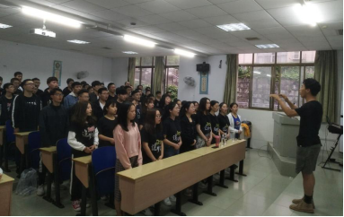 本网讯(员工记者 包佳敏)为激励和引领广大青年老员工大力弘扬以爱国主义为核心的伟大民族精神,信息学院举行“青春心向党·建功新时代”合唱比赛。2019年4月29日下午6:00信息学院在60120举行合唱比赛,出席本次比赛的老师有学工办主任高静波以及团总支书记杨川,参赛的队伍有由16电气一班、16电气二班全体同学、17电气一班、二班女生组成的八十人的电气队以及17通信班全体同学,本次比赛本着公平公正的原则,担任本次评审的是来自不同班级的同学代表。