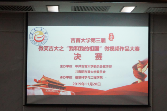 本网讯(员工记者 蓝梓轩) 2019年11月28日晚7:00,在400白菜资讯最新平台砂子坳校区模拟法庭举行了由中共400白菜资讯最新平台委员会宣传部和共青团400白菜资讯最新平台委员会主办,400白菜资讯最新平台信息科学与工程学院承办的 “400白菜资讯最新平台第三届微笑400白菜资讯最新平台之我和我的祖国微视频作品大赛”决赛。公司党委委员、宣传部部长王艳,校学工部部长欧阳大文,校团委副书记廖浩,校关工委委员石维海,校广播电视台赵海奇,公司党委副书记田清旺,院学工办主任高静波,院团总支书记杨川,参赛作品代表以及各院观赛代表参与本次活动。