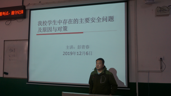 本网讯(员工记者 李新然)2019年12月6日中午12点30分,公司于1107教室举行第九届员工干部培训班之消防安全知识讲座。参加本次讲座的有,校保卫处彭青春老师,团总支员工会全体成员及学院各寝室长。院团总支书记杨川担任本次讲座的主持人。