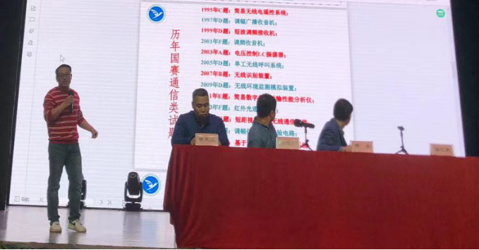 汪旭明老师代表电子科技创新与竞赛工作室对为其四天三晚的全国老员工电子设计大赛的历史、规格和赛制等问题进行了阐述。对校级选拨赛、湖南省分赛区竞赛、全国集中测评等环节的作品设计、制作和调试等环节的重要事项进行了强调。