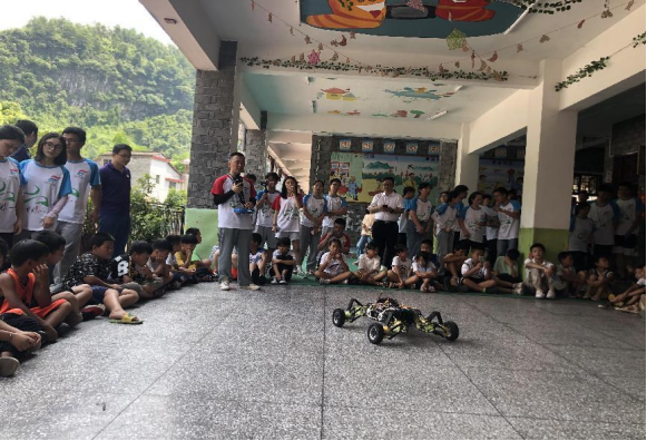 图为学院2022年暑假在寨阳小学开展的无人车科普活动