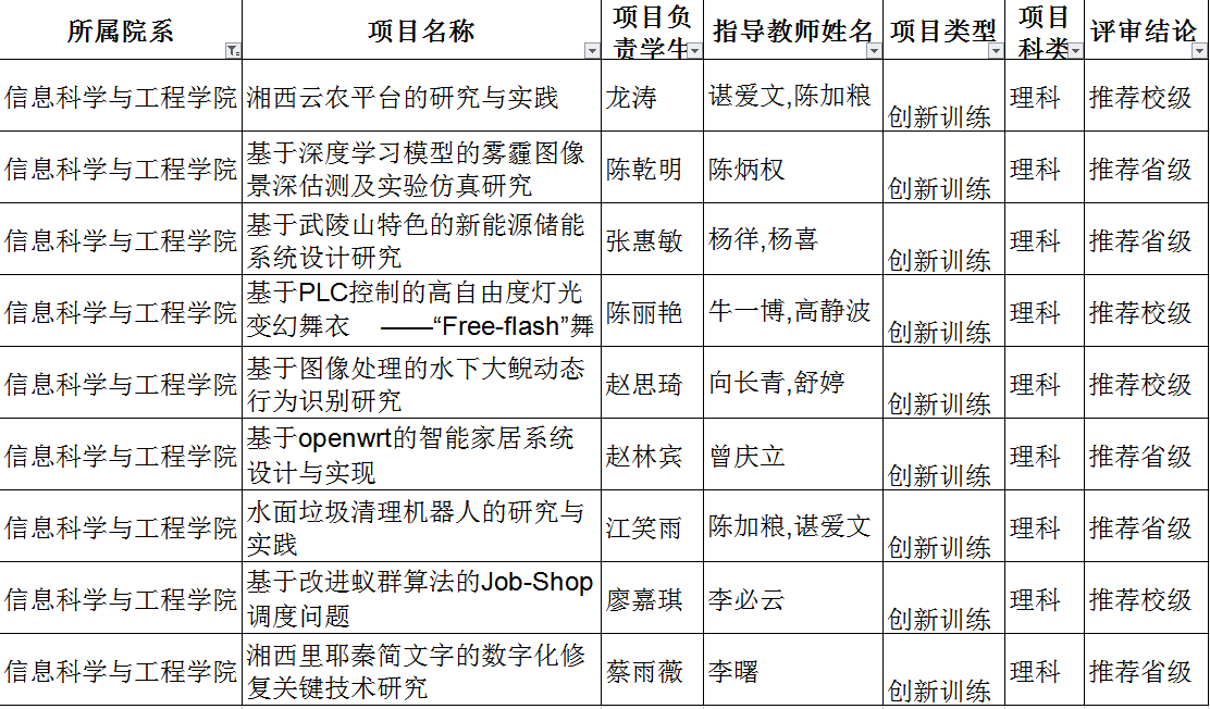 当前位置: 公司首页 >> 本科教学 >> 教学成果 >> 正文 2019年老员工创新创业训练计划项目立项与结题评审,公司立项9个项目,其中5项推荐省级 时间:2019年05月29日 10:08 点击:[]作者: 根据湖南省教育厅《关于报送2019年度湖南省老员工研究性学习和创新性实验计划项目的通知》(湘教通〔2019〕100号)要求,经学校评审并推荐,公司共9项校级老员工研究性学习和创新性实验计划项目(见附件),其中5项推荐省级,现将公司名单公布如下: 请点击下载附件:1 关于对2019年400白菜资讯最新平台老员工创新创业训练计划项目立项与结题评审结果的公示.doc----本附件已下载次 请点击下载附件:1 附件1 2019年4月 老员工创新训练项目立项公示表(总表).xls----本附件已下载次 上一条:转发:湖南省教育厅关于2019年湖南省一流本科专业建设点公示(公司通信工程专业入选) 下一条:2019年公司荣获2项校级教学成果奖,其中一项推荐为省级教学成果奖 【关闭】