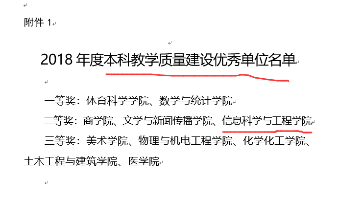 当前位置: 公司首页 >> 本科教学 >> 教学成果 >> 正文 公司荣获2018年度本科教学质量建设优秀单位二等奖 时间:2019年06月27日 09:29 点击:[]作者: 根据学校关于做好2018年度二级单位考核工作的通知精神,相关职能部门组织实施了综合考核工作,经考核评定,报党委会研究同意,2018年度本科教学质量建设优秀单位出炉,公司荣获二等奖,希望各位老师珍惜荣誉,再接再厉,为新时代学院的建设发展做出新贡献。 请点击下载附件:2018年度考核优秀单位和个人-正式文件.doc----本附件已下载次 下一条:转发:湖南省教育厅关于2019年湖南省一流本科专业建设点公示(公司通信工程专业入选) 【关闭】