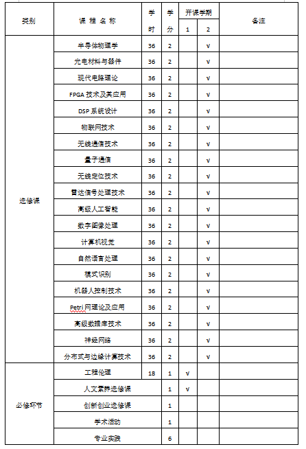 专业实践环节共6学分,一般在第三个学期开始进行,采用集中和分段相结合的实践方式。具有2年及以上电子信息领域相关企业工作经历者专业实践时间不少于6个月,不具有2年企业工作经历者专业实践时间应不少于1年。