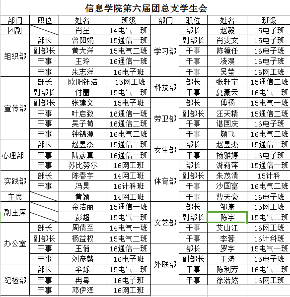 当前位置: 公司首页 >> 员工工作 >> 管理团队 >> 正文 信息学院第六届团总支员工会成员名单 时间:2017年03月02日 11:49 点击:[]作者: 上一条:信息学院各班班委名单 下一条:公司创新创业工作机构 【关闭】