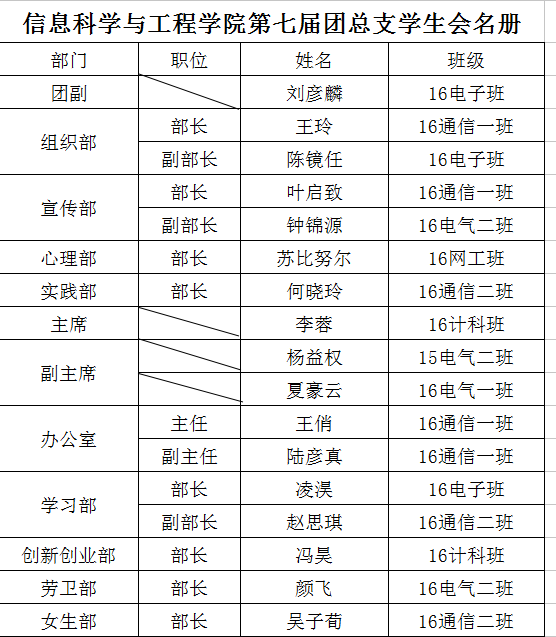 当前位置: 公司首页 >> 员工工作 >> 管理团队 >> 正文 信息科学与工程学院第七届团总支员工会名册 时间:2017年09月11日 09:39 点击:[]作者: 请点击下载附件:信息科学与工程学院第七届团总支员工会名册.xlsx----本附件已下载次 上一条:信息学院第七届团总支员工会成员通讯录 下一条:信息学院各班班委名单 【关闭】