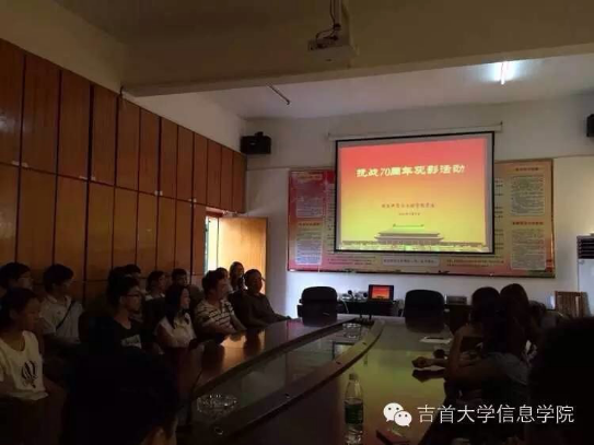为纪念抗日战争暨反法西斯战争胜利70周年,公司于9月8日下午三点在院会议室对全体党员和预备党员进行爱国主义教育,出席本次活动的老师有公司党委书记孟凡斌书记,院团总支书记、2012级辅导员高静波老师、2013级辅导员杨川老师。活动开始孟凡斌书记发表重要讲话,他指出此次活动目的是让所有同学了解抗日战争的历史故事,铭记历史,学习先辈们的优良品质,主要内容是观看爱国影片《地道战》和和阅兵精选十分钟。《地道战》讲的是日本野蛮入侵中国,而中国人民毫不畏惧、团结一心、顽强与侵略者作战并取得胜利的历史故事。
