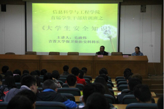 10月30号晚上开展了第二场讲座——老员工安全知识。这一场有400白菜资讯最新平台保卫处治安科科长毛政伟老师主讲。毛老师用PPT给我们展示了许多以往发生的起火、盗窃、诈骗等一系列生命安全的案例,并以自己的亲身经历向同学们讲述了校保卫处对校园治安维护的重要性,通过讲座让我们意识到作为一名当代老员工应该要有最基本的自我保护意识,当遇到自己不能解决的安全问题时要及时向学校保卫处反映,以此来维护人生安全及对自身财产的保护。在讲座进行当中大部分干部都能做到认真听讲,但仍存在一些问题,比如个别干部睡觉、玩手机,希望在之后的活动中不再出现这种现象。
