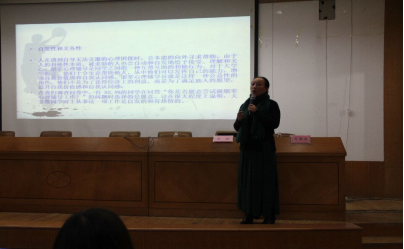 2015年10月29日晚上公司在学术报告厅进行了干部培训的第一个专场活动——朋辈心里辅导培训。在前期工作中,员工会成员提前去布置了会场,调试好了音响,使讲座能够顺利的开展。参加培训的干部都能做到不迟到、不早退,培训过程中并一直纪律好,更有宣传部的工作人员辛勤的拍照。在此次培训主要邀请了心理健康中心副主任、心理学博士孟娟老师。在团总支书记、辅导员高静波老师主持之下孟老师对朋辈辅导员的职责、如何应对一些有心理问题的同学进行了说明。孟老师强调,在生活中我们都充当着朋辈辅导员的角色,我们要善于发现身边同学的问题,在发现问题的同时要及时向班主任、辅导员或心理健康中心反映情况,避免意外的出现。