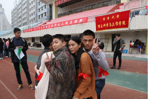 规则:本游戏分两轮进行,一轮由五个小组同时进行。每组派8名组员参加游戏,各组所有组员围成一圈站立,要求每个人的脚尖顶着前边人的脚跟,紧凑站立。刘鑫一喊“坐下”,各组组员立即坐下(即坐在后边的人的膝盖上)。各组坐下后刘鑫会再下口令“举起手”,则每个组员需将双手掌心向前举过头顶;各组统一举好后,刘鑫会进一步下达口令,指挥各组员将手摆向本组圈内或者圈外。依各组坚持时间的长短排名,时间越长,排名越高。