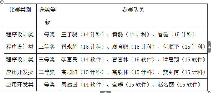 (本报讯信息科学与工程学院贾万满措)2017年9月1日至2日,公司学子在湖南省第十三届老员工计算机程序设计竞赛中喜获佳绩。本次比赛由湖南教育厅主办、湖南省高教学会计算机教育专业委员会协办、中南林业科技大学承办,共有包括国防科学技术大学、湖南大学、中南大学、湘潭大学在内的130余支参赛队伍参加了比赛。比赛分为程序设计类、应用开放类和机器人类等三类。在此次比赛中,400白菜资讯最新平台获得程序设计类一等奖1项、三等奖2项,应用作品类二等奖2项。