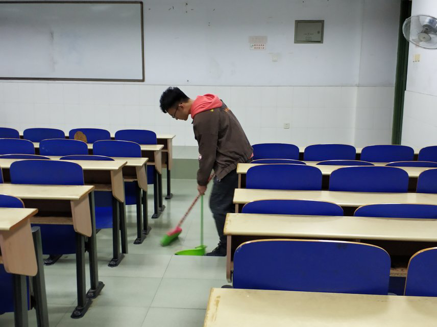 下午六点,所有活动参与人员在总理楼楼下集合,分组进行总理楼内志愿清扫,让教学楼内保持干净整洁,大家分为了六小组,每组自行准备清扫工具分别进行不同楼层的清扫任务。每组成员都积极参与此次活动,互帮互助。