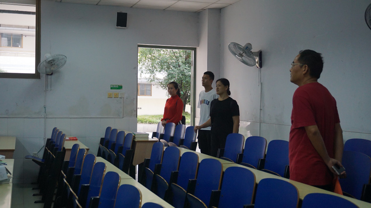 本网讯(员工记者黄訸)2019年9月2日上午8:00,信息公司党委副书记田清旺、学工办主任高静波、团总支书记杨川、2019级辅导员何剑等一行人来到了总理楼门前,认真察看了开学第一课时公司员工的上课情况。