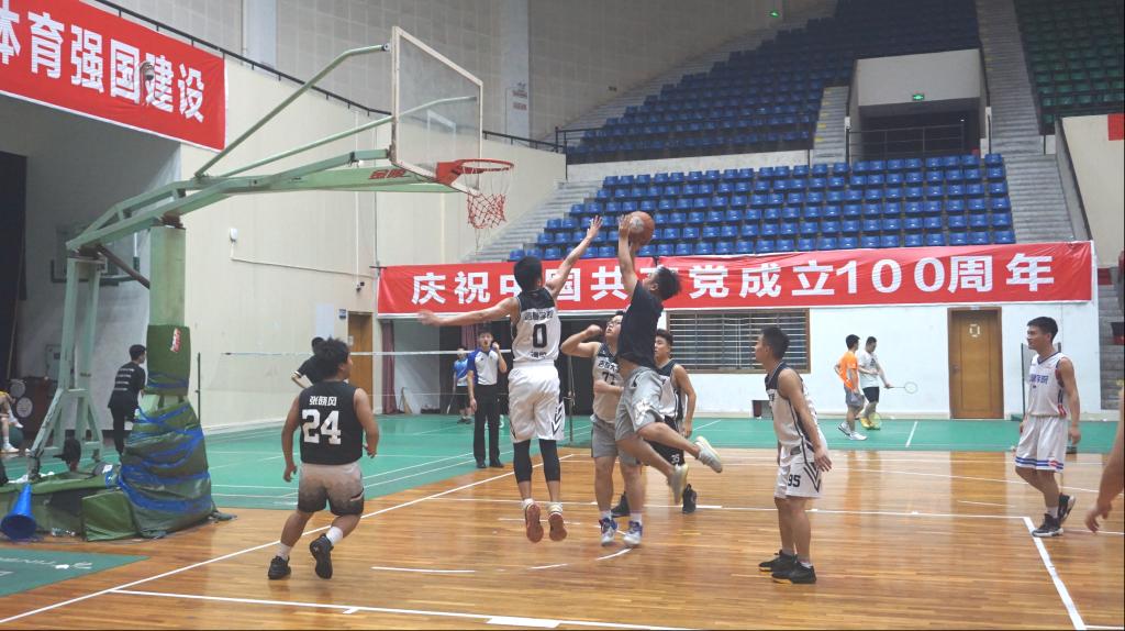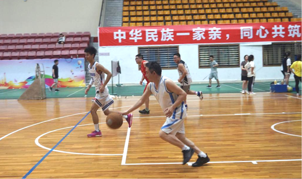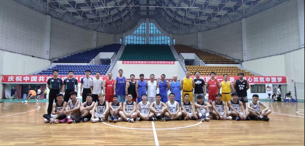 为丰富同学们的课余文化生活,增强师生之间的感情,学校教职工篮球队分别与2021年“毕业杯”篮球赛男篮前八名的队伍进行比赛,2021年6月16日晚19:30,学校教职工队与本次毕业杯篮球赛男篮的冠军队伍——信息学院员工队于新体育馆展开了一场精彩纷呈的对决。