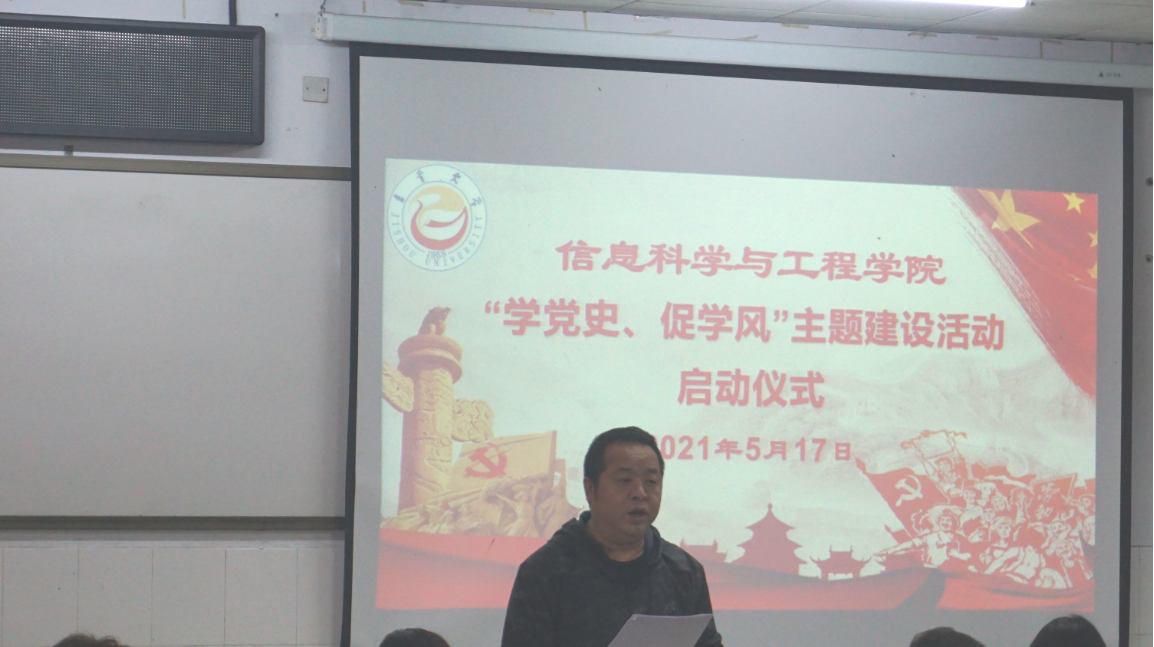 会议开始,郑迅老师宣读活动实施方案,包括活动意义、活动目的等相关细节,其中,郑迅老师强调了活动的要求,他希望同学们能够自觉主动地为建党一百周年这个重要时间节点营造良好的氛围。