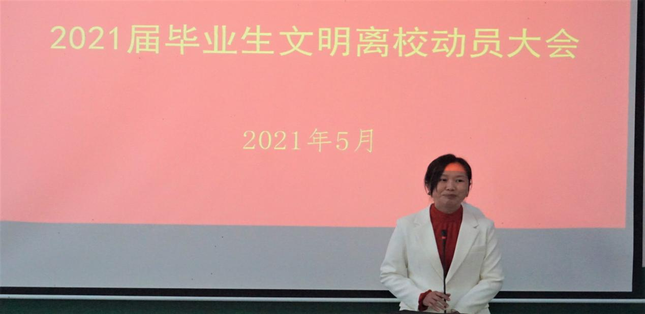 会议最后,杨川发言,她以数年的院校工作经验与毕业生分享了离校注意事项,希望同学们按照学校统一安排,严格遵守学校和学院的规章制度,同时表达了对2017级毕业生的不舍之情以及殷切期望。