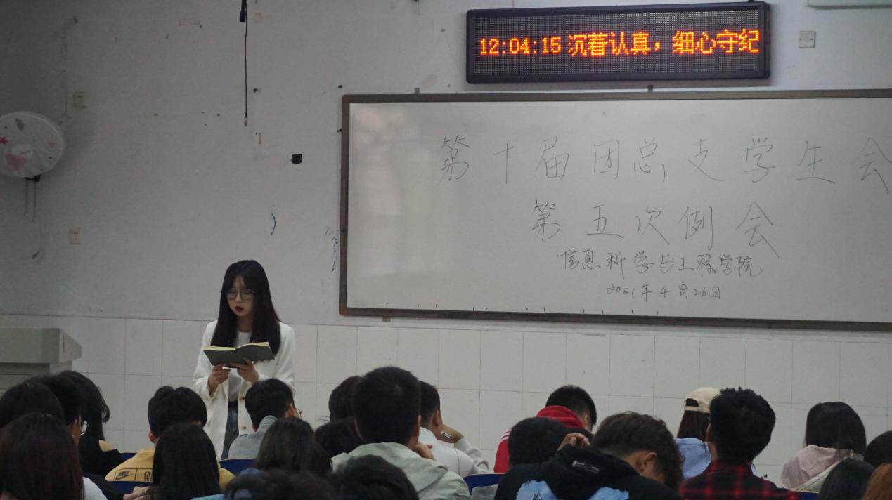 2021年4月27日中午12:05,公司在总理楼60115召开第十届团总支员工会第五次例会。本次参会人员为第十届团总支员工会全体成员以及18、19、20级各班班长及团支书,此次会议由第十届团总支员工会常务团副李新然主持。