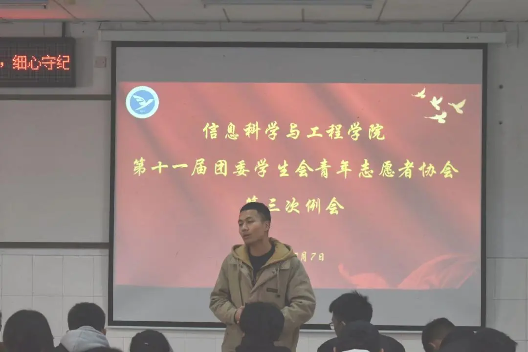 2021年12月17日中午12:05,在砂子坳校区60115教室举行了信息科学与工程学院第十一届团委员工会第三次例会。团委员工会全体成员以及19、20、21级各班班长团支书参加会议。会议由主席团成员关角才让主持。