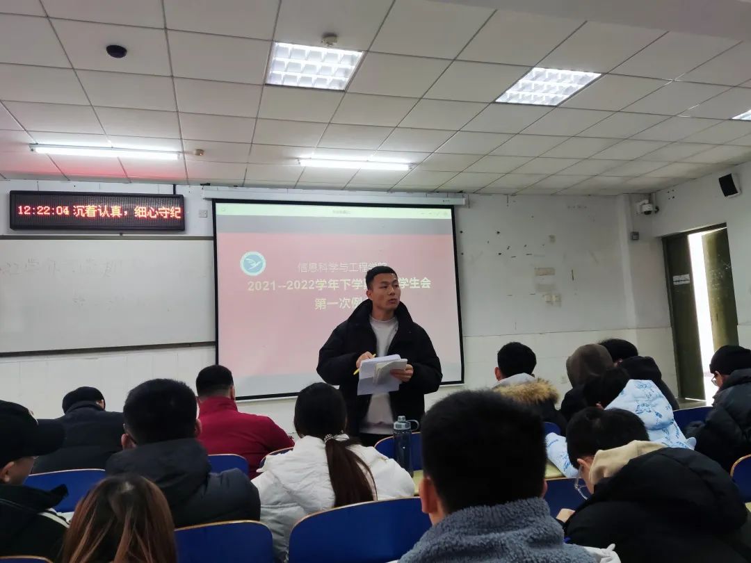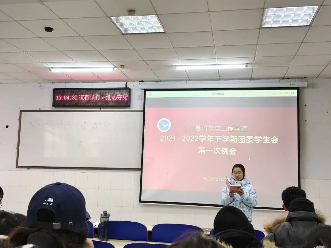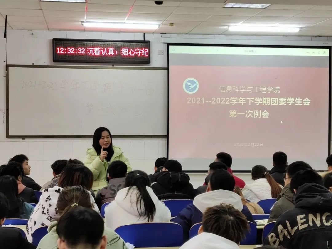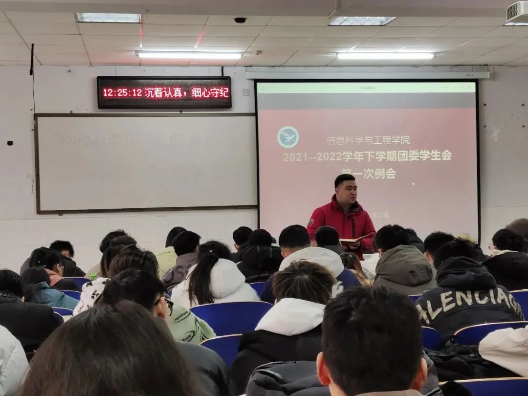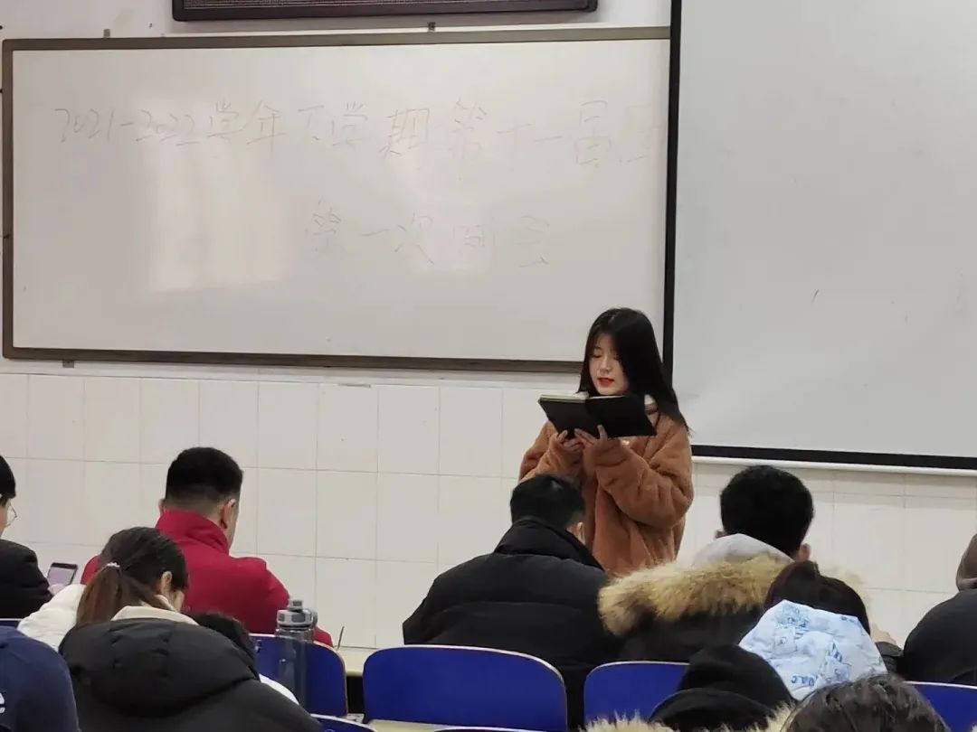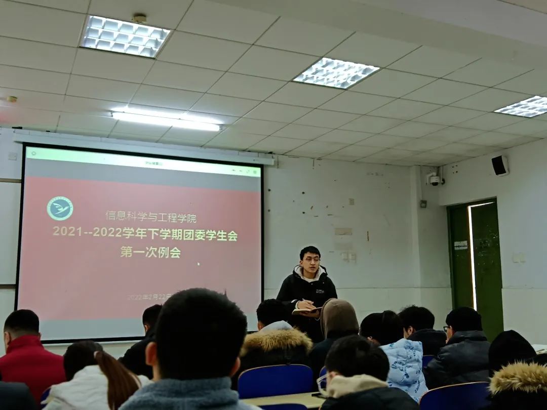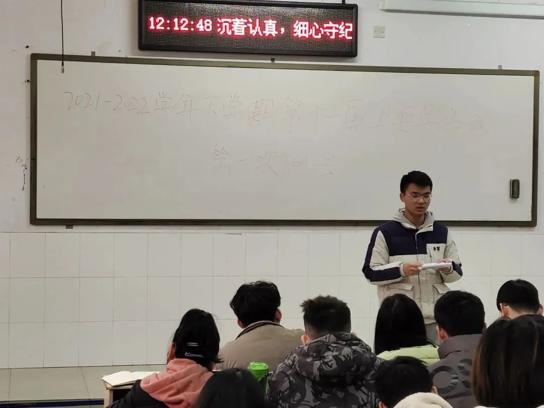 会上,各部门代表依次上台就新学期相关工作进行部署,包括寒假社会实践材料整理和收集、文明劝导等,同时对上学期青年大学习整体情况做了总结,针对青年大学习学习率高的班级提出了表扬,希望各个班级负责人认真督促,再接再厉,争取青年大学习学习率更上一个台阶。