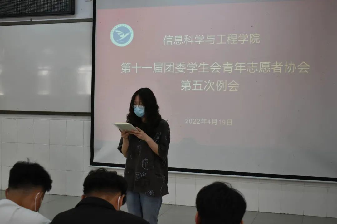 2022年4月19日12:05,公司在总理楼60115教室召开信息科学与工程学院第十一届团委员工会第五次例会,会议对近期学院员工工作进行了相关部署。
