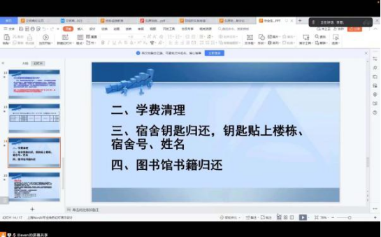 (通讯员 党瑞)为营造安全健康、文明有序、积极向上的毕业离校氛围。公司于2023年6月2日下午,在工科大楼C327召开2023届毕业生文明离校工作线上、线下会议。公司党委书记张华,学工办主任杨川,教务办副主任吴彬,教工党支部副书记刘耀峰,辅导员阳帅,院团委、员工会组织部部长张松涛同学及全体2019级员工参加本次会议。会议由杨川主持。