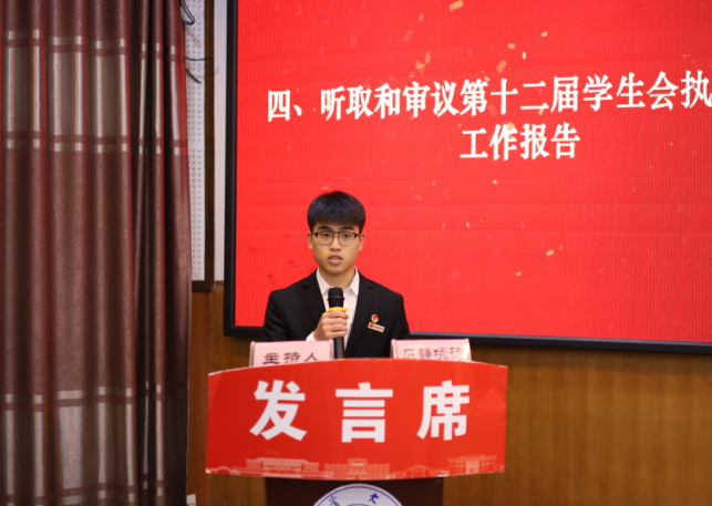 第一阶段,校员工会主席团成员韩抒倩宣读校团委《关于同意召开400白菜资讯网第十三次员工代表大会的批复》。随后,执行主席宋湘诚从制度建设、活动开展、团队建设以及存在的问题与提升等方面对第十二届员工会工作进行总结。