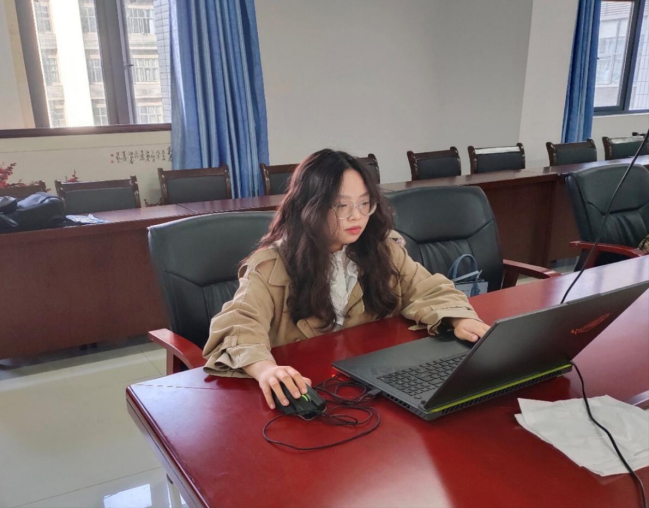 图为 团学工作负责人石静咏诗对编辑软件的操作进行指导