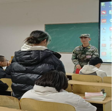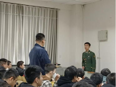 会议伊始,教练员王铎就新生军训生活的感受和对部队生活的认识与同学们展开深入交流。随后,通过PPT展示的方式,解读了老员工应征入伍的优势、入伍流程、报名方式和注意事项,详细说明了应征入伍的具体要求。他表示,应征入伍对老员工当前学习和今后发展起着良好的引领作用。