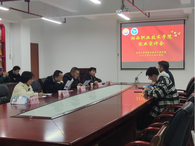 (本网讯)2023年12月14日上午,湘西职业技术学院信息与智能学院麻清香经理一行六人来公司进行招聘宣讲。党委书记张华、就业专干阳帅、2024届电子信息专业18名硕士生参加宣讲会。