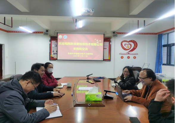 (本网讯)2023年12月15日下午,湘西新浪潮信息技术有限公司执行总经理李湘琴一行三人来公司交流,公司党委书记张华、经理杨喜参加,学工办主任杨川主持交流会。
