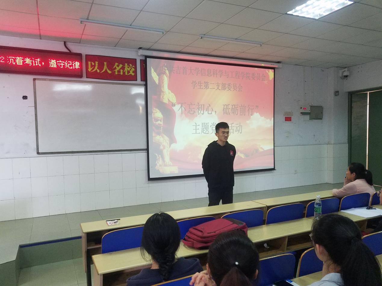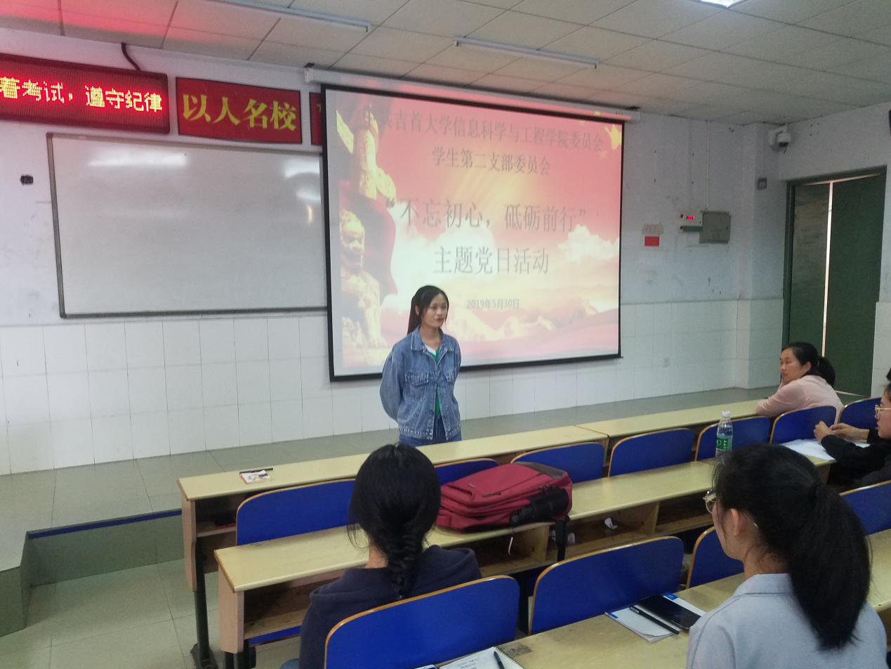 2019年5月30日中午12:30,公司员工第二党支部在新60103教室召开"不忘初心,砥砺前行"主题党日活动。参加本次活动的有员工第二党支部书记杨川老师和该支部所有党员。