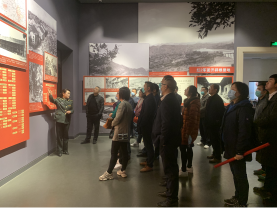图二:聆听讲解员讲授第二方面军的长征事迹