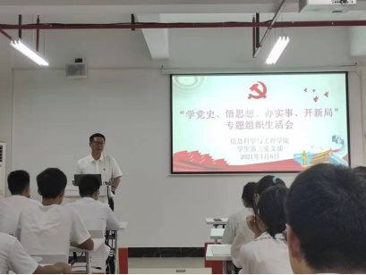 会议伊始,何剑同志向与会党员同志介绍了本次专题组织生活会的议程,提到本次组织生活会与会党员要围绕学习贯彻习近平总书记“七一”重要讲话精神和党史学习教育学习情况开展批评与自我批评,认真查找差距,不断增强“四个意识”、坚定“四个自信”,做到“两个维护”,切实把党史学习教育的成果转化为担当作为、干事创业的实际行动。