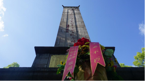 注:党支部在革命烈士纪念碑前捐献的花篮
