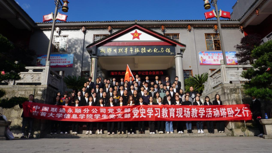 两个党支部立足于聚合党建和创、品牌专业对口的实际,促成了本次校企党支部联合开展党史学习教育实践活动。活动中全体党员在革命烈士纪念碑前敬献了花篮,重温了入党誓词,参观了湘鄂川黔省革命委员会、省委、省军分区旧址以及纪念馆,中国联通永顺分公司党支部书记陈泊银给全体党员们分享了“十万坪大捷”的党史课,并立足于自己的岗位实践,寄语在场的员工党员,希望当代青年老员工勿忘历史、珍惜当下、扎根基层、实现理想。