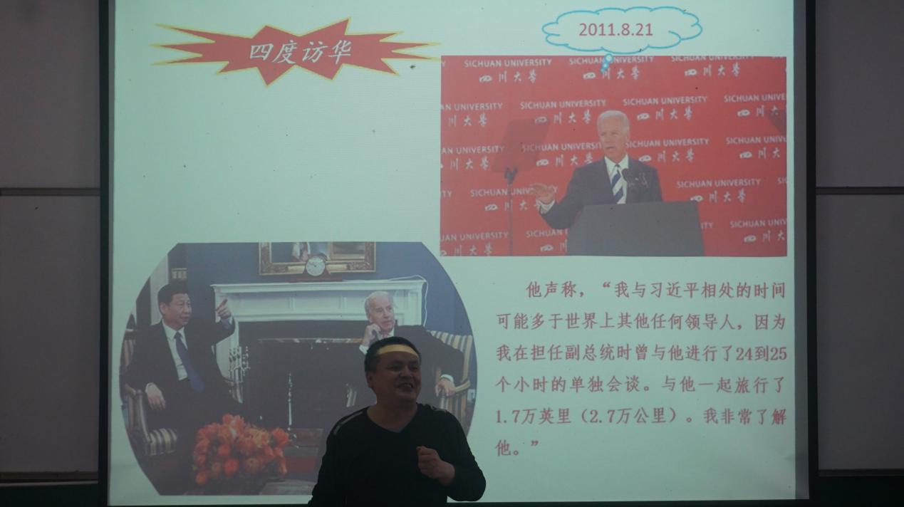 在第一教学楼1206的发展对象培训班中,袁云初副教授从四个方面分析了“拜登政府对华关系走向及中美关系未来”。教授那严肃又不失幽默的讲话深深的吸引了同学,同时也引发了他们的深刻思考:面对这样的局势,我们该怎么办?本节课结束后,同学们进入了自由讨论环节,并主动上台分享自己的感受与看法。