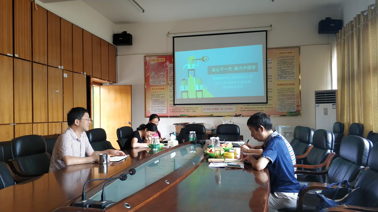 本网讯(记者李敏)2018年6月27日下午15:00,学校关工委刘湘生老师,何英豪老师来到公司会议室,对公司2017—2018学年关工委工作进行考核。院学工办主任、关工委秘书高静波对公司这一年关工委的工作进行了汇报,公司党委书记周小清、辅导员助理李敏等参加了此次会议。