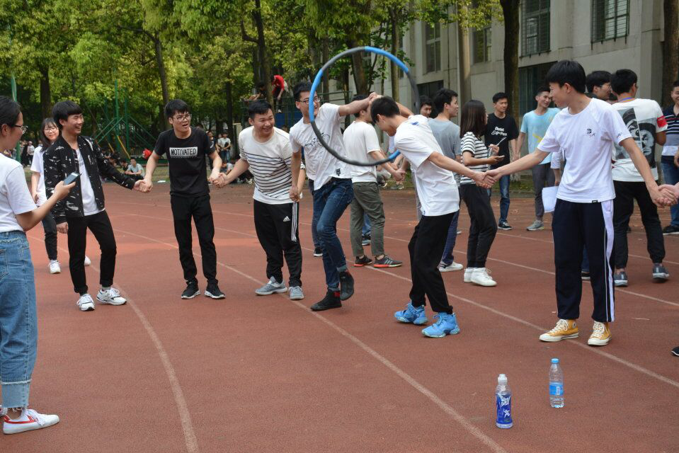 此次趣味运动会共有筷夹乒乓球、篮球保龄球、快乐抱抱爆、抛绣球、呼啦圈过山车、猛龙过江和拔河七个项目,在老体育馆和田径场两个比赛场地分开进行。在班级负责人以及工作人员的组织带领下,各活动项目进行的有条不紊。赛场内的同学们笑容明媚,挥洒汗水;赛场外的同学们为班级同学呐喊助威,给校园增添了许多动感与活力。