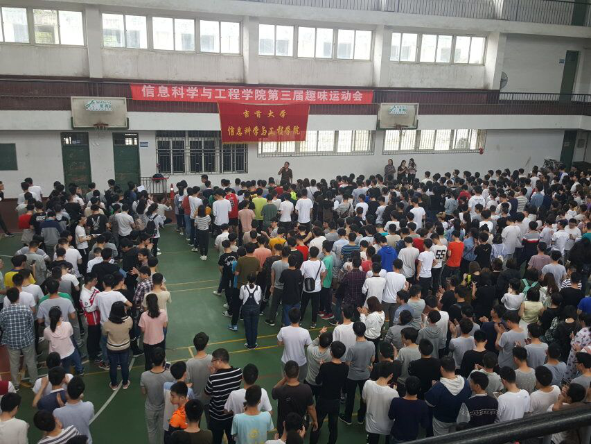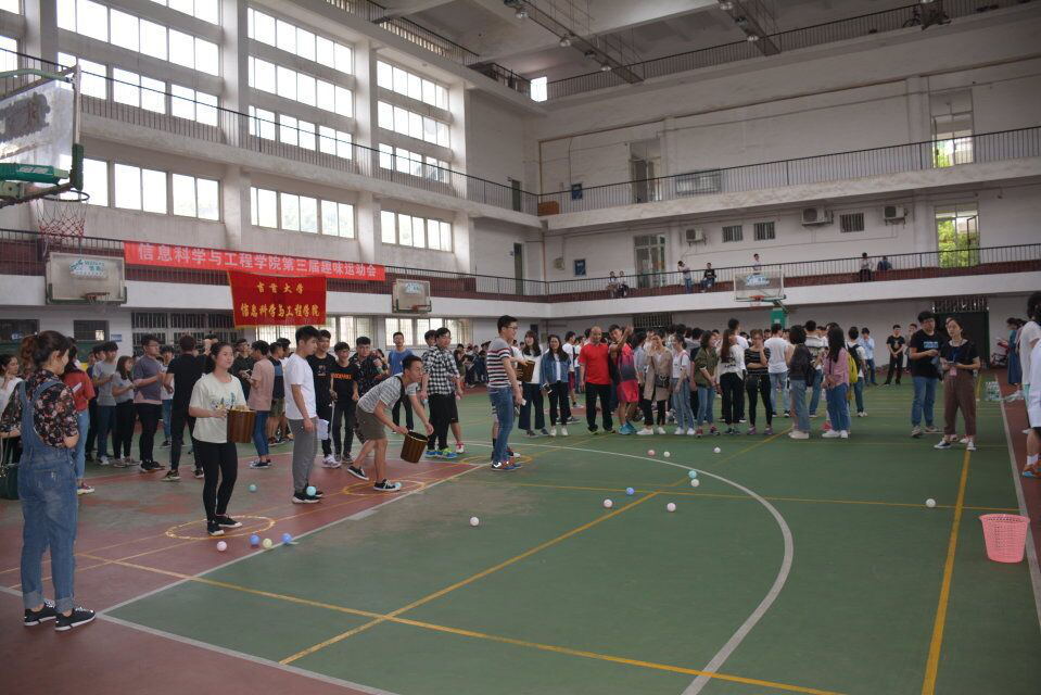 本网讯(员工记者何琼)4月21号下午两点信息科学与工程学院在老体育馆举办第三届趣味运动会,出席此次运动会开幕式的有公司党委副书记田清旺副教授、学工办主任高静波老师、团总支书记杨川老师、15级辅导员郑迅老师、各班班主任以及15级、16级、17级全体成员。