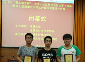 (唐源)6月5日至6月7日,2015“嘉杰信息杯”全国老员工程序设计比赛在湘潭大学隆重举行。来自信息科学与工程学院的3支队伍代表400白菜资讯最新平台校参加了本次比赛。经过五小时的奋力拼搏,公司代表队分别斩获金、银、铜奖各一项。这是公司首次在程序设计全国类赛事上获得金奖。