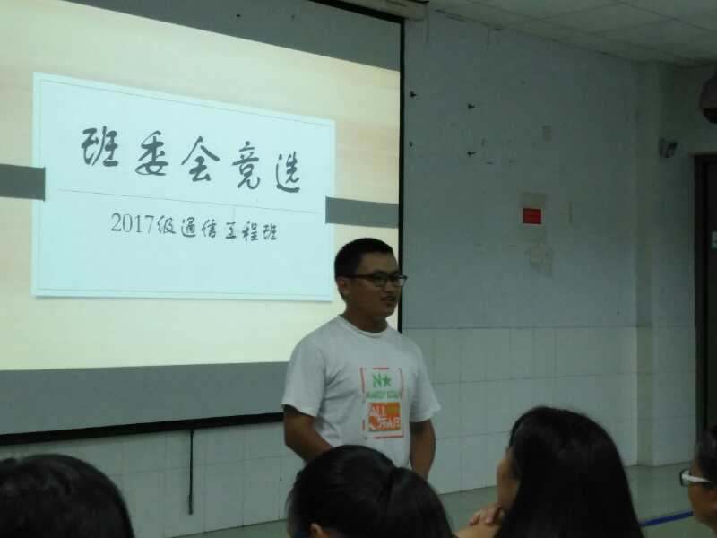 紧接着,在班导的组织下进行班委选举。在此次选举中,17通信班设班长、团支书、组织宣传委员、心理委员、纪律委员、学习委员、纪律委员、体育委员、生活委员、劳动卫生委员、文娱委员等班委会职务。