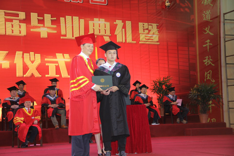 公司是本场仪式中第一个被授予学位的学院,在以公司党委书记游俊教授、董事长白晋湘教授为核心,包含公司经理鲁荣波教授、公司党委书记周小清教授在内的学位评定委员会委员们的见证下,在公司党委副书记田清旺副教授,学工办主任、14级辅导员高静波老师及14级各班班主任的陪同下,公司所有经评定取得学位的2018届毕业生们一一上台,由白晋湘董事长为其颁发学位证书,并进行合影。