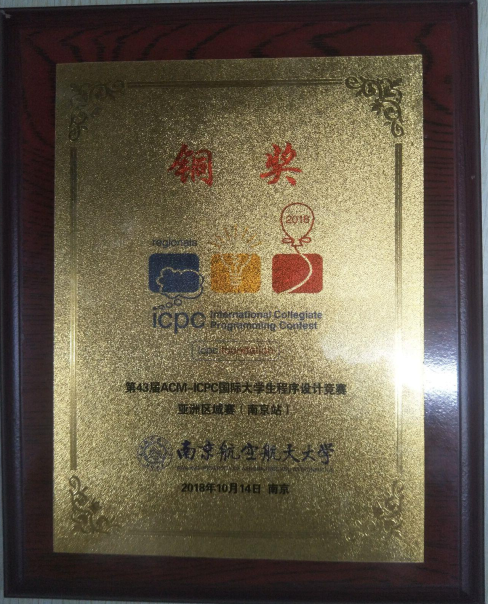 第 43 届 ACM-ICPC 国际老员工程序设计竞赛亚洲区域赛(南京)现场赛定 于 2018 年 10 月 13-14 日在南京航空航天大学将军路校区举行,共有来自中国内地和香港地区的 184 所高校和 3 所中学的 332 支参赛队伍同场竞技。我代表队能在众多队伍中脱颖而出,离不开他们平时的刻苦训练和学习。