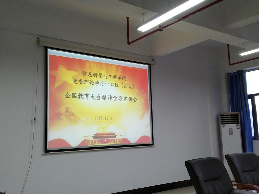 本网讯(舒婷)2018年12月4日下午,公司在院会议室召开公司党委理论学习中心组(扩大)会——全国教育大会精神学习宣讲。会议由鲁荣波经理主持,周小清党委书记就深入学习贯彻习近平总书记重要讲话和全国教育大会精神为教职工作报告,学院全体教职工参会集中学习。