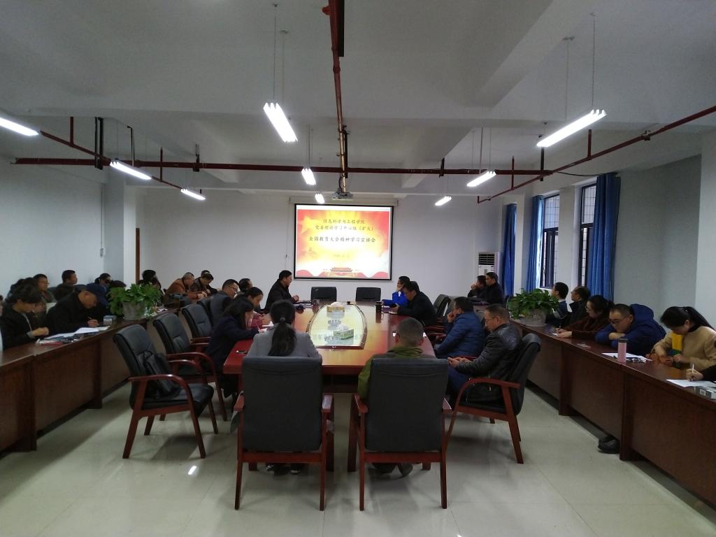 周书记从五个方面:一、教育是国之大计、党之大计;二、牢牢把握教育改革发展的“九个坚持”;三、全力培养社会主义建设者和接班人;四、建设高素质专业化教师队伍;五、认真学习贯彻全国教育大会讲会精神系统地解读了全国教育大会精神。他指出我们必须坚持社会主义办学方向,全院教师要充分认识到全国教育大会的重要意义,要把培养社会主义建设者和接班人作为教育的根本任务,要为实现“两个一百年”的奋斗目标和中华民族伟大复兴的中国梦,培养人才;要联系学院办学特色,优先发展教育事业,加快推进教育现代化;全院老师一定要认真学习贯彻习近平总书记在全国教育大会上的重要讲话精神,牢牢把握教育这个国之大计、党之大计,坚持优先发展教育事业、加快推进现代化、建设教育强国,不继培养一代又一代社会主义建设者和接班人;要深入理解贯彻习近平总书记对我国教育事业规律性认识“九个坚持”,牢牢把握教育改革发展的“九个坚持”,不断增强贯彻落实“九个坚持”的自觉性和坚定性,不断提高人才培养水平,促进学院事业全面发展。