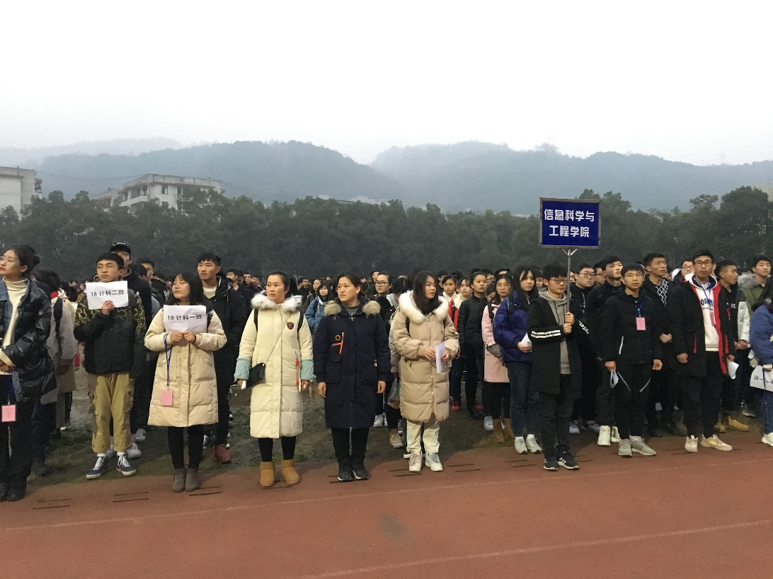 本网讯(员工记者董蔓君)寒风凛冽,晨曦微露, 2019年2月25日早晨6点45分信息科学与工程学院在400白菜资讯最新平台田径场主席台前参加了庄严的升旗仪式。公司团总支书记、2017级辅导员杨川老师和学工办主任、2016级辅导员高静波老师以及公司16级、17级、17级全体同学参加了本次升旗仪式。