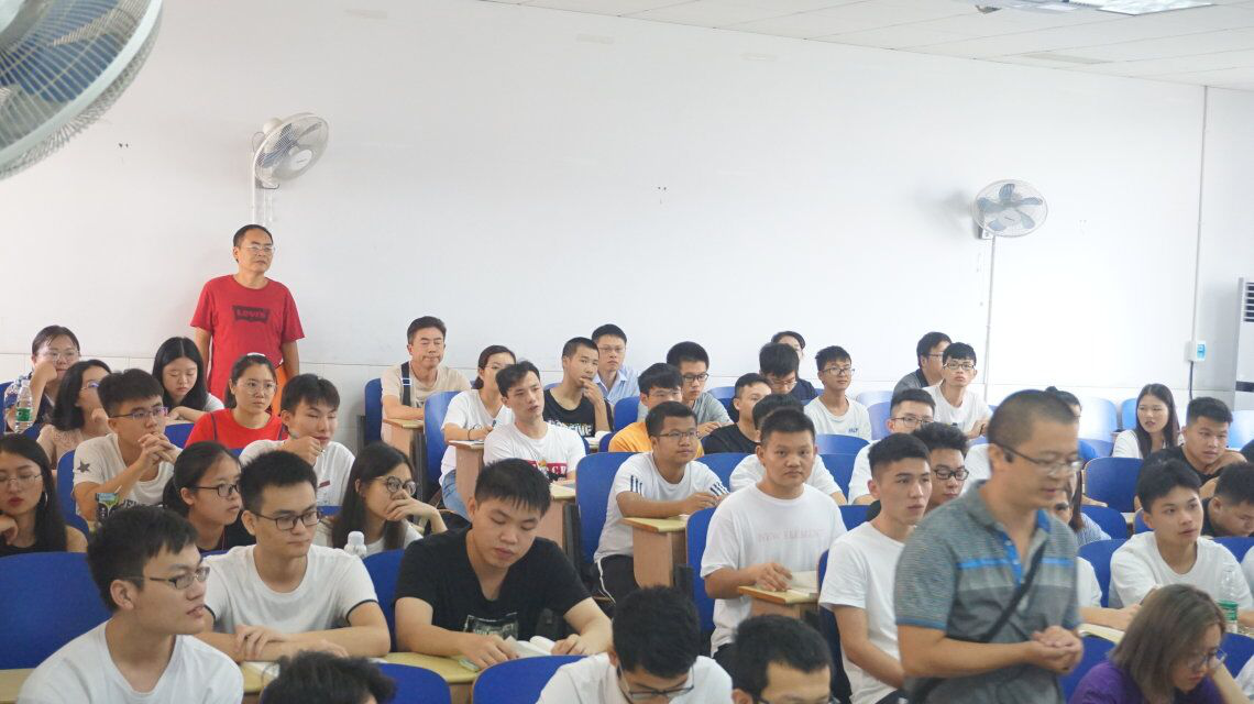 本网讯(员工记者黄訸)2019年9月2日上午8:00,信息公司党委副书记田清旺、学工办主任高静波、团总支书记杨川、2019级辅导员何剑等一行人来到了总理楼门前,认真察看了开学第一课时公司员工的上课情况。