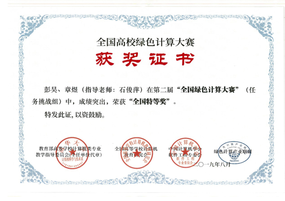公司学子在“第二届全国高校绿色计算大赛”中荣获佳绩