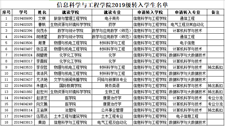 当前位置: 公司首页 >> 正文 信息科学与工程学院2019级转入员工名单公示 时间:2019年12月31日 15:47 点击:[]作者: 经学院转专业工作小组集中考核,结合学院实际情况与员工的综合表现,2019级转专业(转入)员工名单已经出炉,现将名单进行公示,公示期为3天,若有异议,可在2019年1月2日之前跟学院反映。 信息科学与工程学院2019.12.31 上一条:信息科学与工程学院2019就业质量报告 下一条:香港中文大学黎卫兵博士来公司讲学 【关闭】