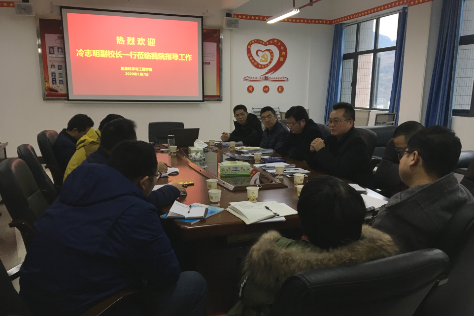 2020年1月7日下午,公司党委委员、副董事长冷志明一行到公司指导2019版本科人才培养方案审定工作。陪同冷副董事长的有实验室与设备管理中心主任麻明友、化学化工学院经理李佑稷、商学院经理丁建军、教务处实践科长朱长城。信息科学与工程公司党委书记黄生祥、经理杨喜、院副经理廖柏林、各系主任及骨干教师参加了会议。会议由杨喜主持。